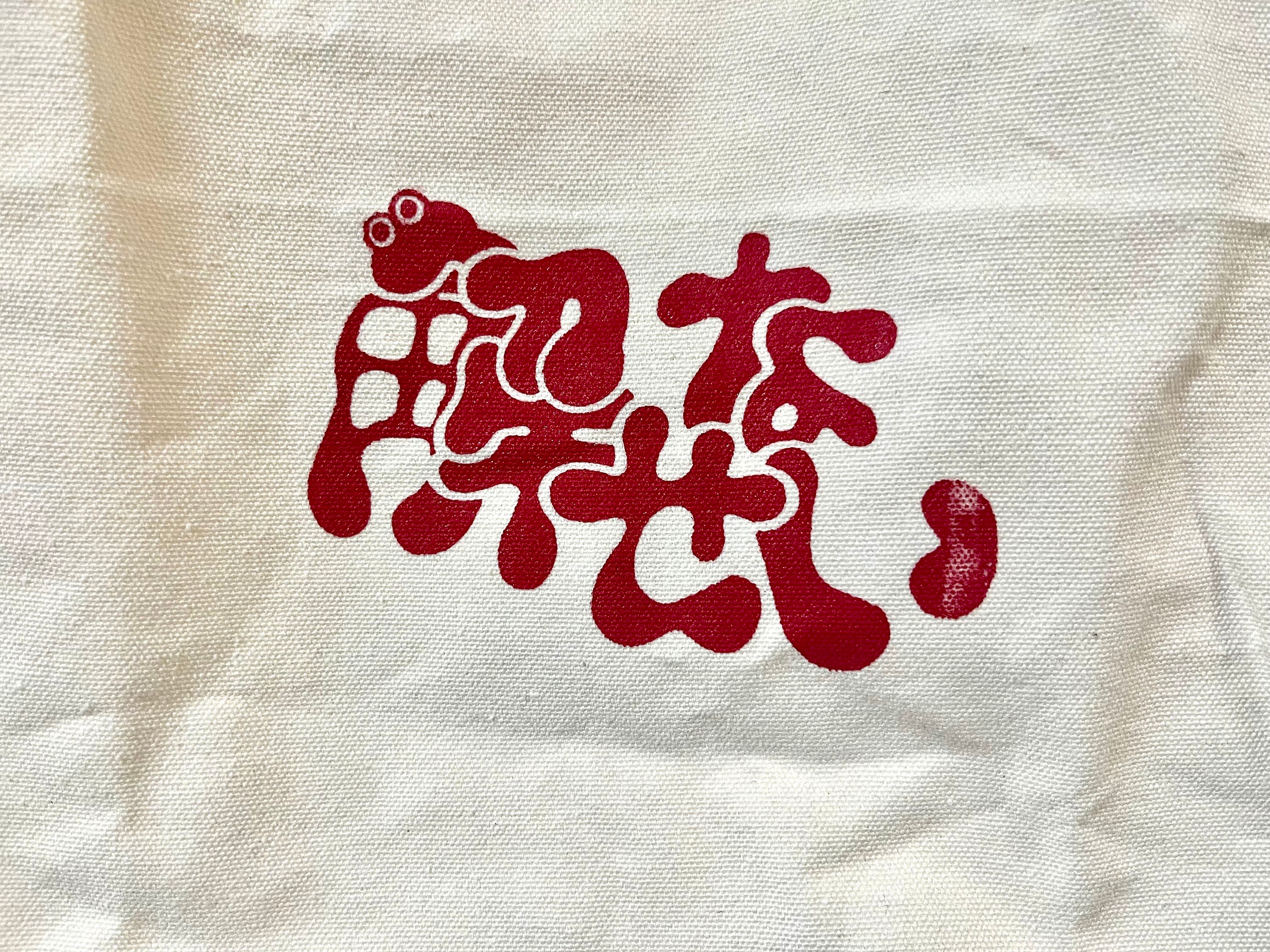 丈夫なキャンバス地のB4サイズのトートバッグに赤でスクリーンプリントしております。